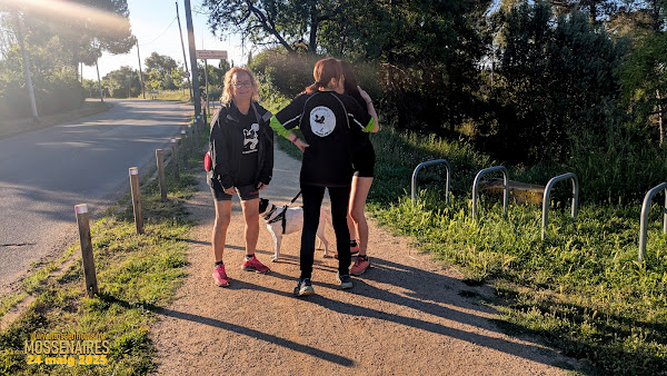 Per nosaltres sempre ens agrada saber que porteu el nostre emblema, les dues banderes que ens recorden el projecte que portem, i avui la de córrer ha estat conduïda per Txell Castañé i la de caminar per Raquel Medina. A l'hora de la fotografia de família hem volgut destacar que Mossenaires corrent han fet plegats i d'ençà que vam començar el projecte 16.800 quilòmetres, tan sols els dissabtes. És a dir des de l'any 93, cada dissabte hi ha hagut entrenament i la suma ve a ser això. Què us sembla?